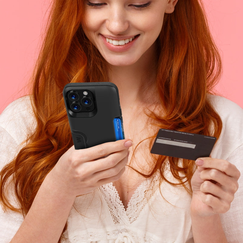 Slide into convenience. The MyBat Pro Slide Series Case for iPhone 13 Pro combines rugged protection with built-in card storage for everyday carry. A slim side compartment securely holds up to 3 cards or IDs, giving you quick access to essentials without carrying a wallet. The dual-layer design pairs a hardened outer shell with a shock-absorbing inner layer for tough drop defense, while raised bezels and reinforced corners shield the screen and camera. With its secure side-slide design, slim profile, and non-slip grip, the Slide Series iPhone 13 Pro case keeps your phone and cards safe in one sleek case.