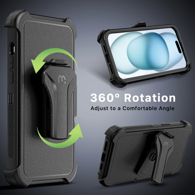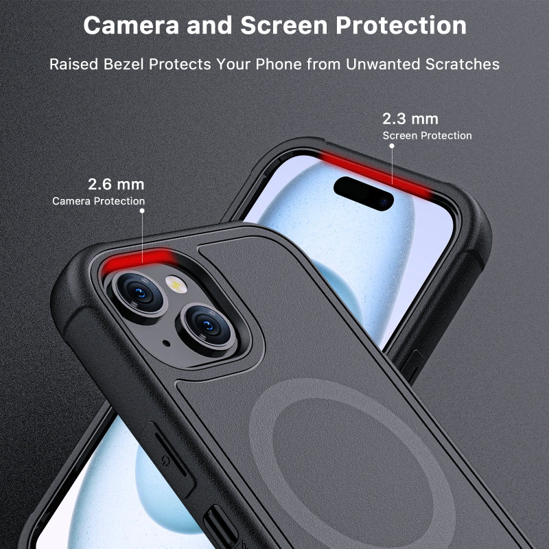 For those who follow their own path. Rugged, reliable, and ready for anything, the Maverick Series MagSafe Case for iPhone 15 is built for bold protection and independent spirit. This triple-layer case pairs military-grade toughness with MagSafe convenience, featuring shock-absorbing corners, a reinforced camera ring, and raised bezels to shield your screen and lenses. A textured, non-slip grip keeps it secure in your hand, while the included rotating holster doubles as a kickstand for hands-free use. Plus, a tempered glass screen protector is included for extra defense right out of the box.