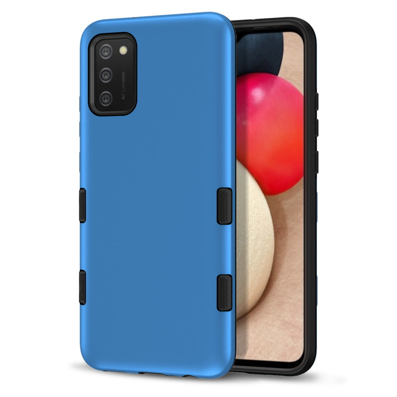 Slimmed down. Toughened up. The MyBat Pro Tuff Subs Series Case for Samsung Galaxy A02s delivers the same rugged protection from the Tuff series—now in a thinner, more streamlined design. With its dual-layer construction, the hard outer shell and padded inner layer work together to guard the Galaxy A02s against drops, bumps, and everyday wear, meeting military-grade drop protection standards. Non-slip textured ridges give a secure, comfortable grip, while raised bezels keep the screen and camera safe from scratches. Perfectly engineered for the Galaxy A02s, the Tuff Subs combines lasting protection with a lighter, slimmer feel.