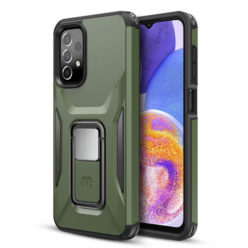 Its sole mission: protection with function. The MyBat Pro Stealth Series Case for Samsung Galaxy A23 5G delivers rugged defense and built-in utility. The dual-layer design combines a hardened outer shell with a padded inner layer for 2X the durability of standard Galaxy A23 5G cases. Military-grade certified for drops up to 12 feet, it shields your phone with shock-absorbing corners and raised bezels to protect the screen and camera. A built-in kickstand ring holder doubles as a secure grip for one-handed use and hands-free viewing, while the integrated metal plate makes it magnetic mount ready. Slim, lightweight, and comfortable to hold, the Stealth Series Case is tough protection that doesn’t compromise on convenience.